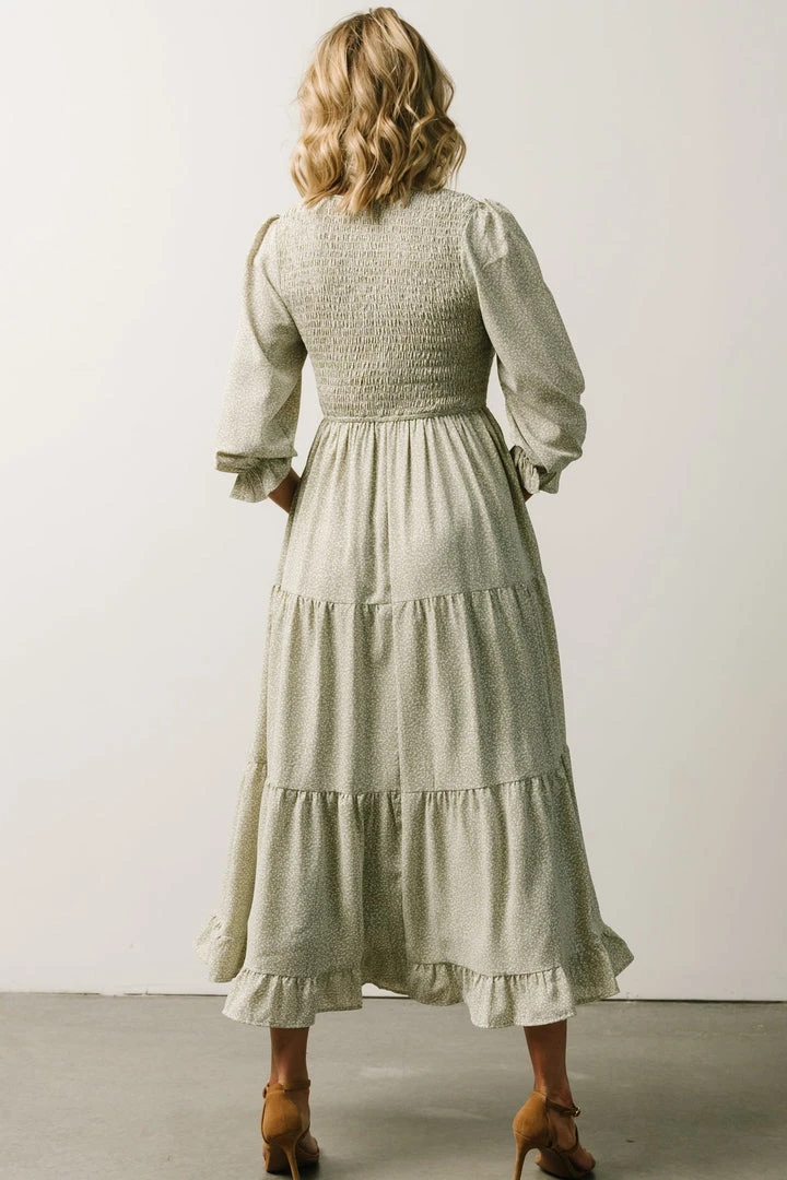 POL Tarryn Smocked Midi Dress | Dusty Olive Floral