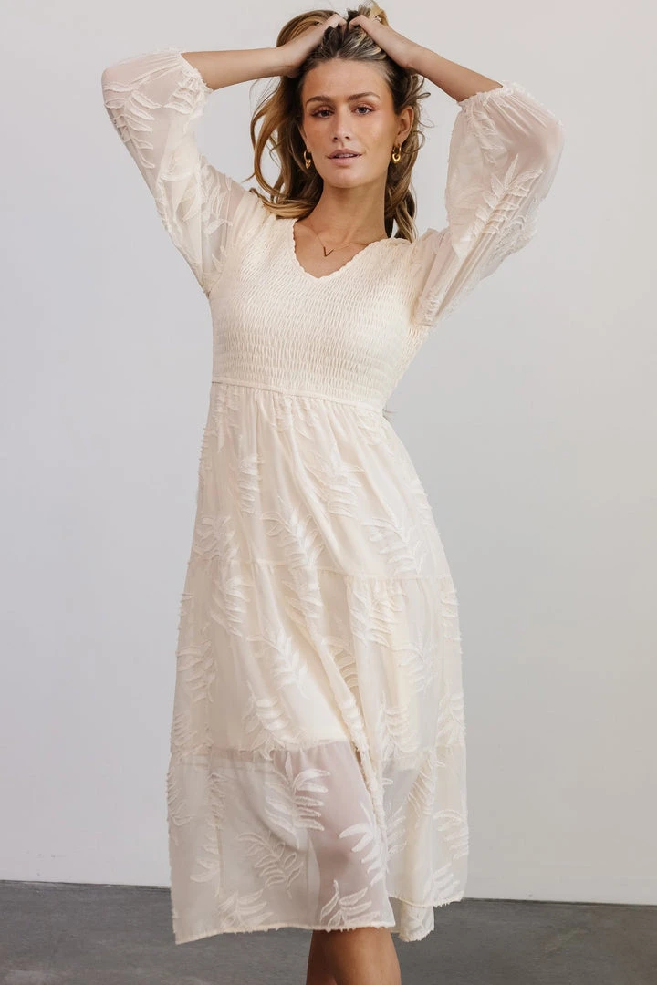 POL Tommi Smocked Midi Dress | Vintage Cream