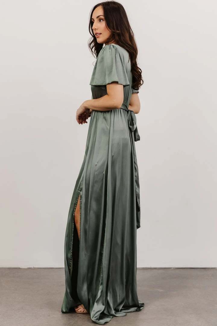 RR Shiloh Satin Maxi Dress | Eucalyptus Dresses