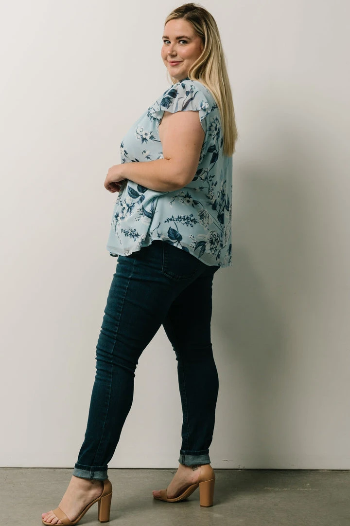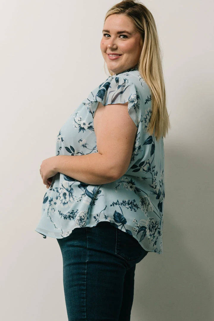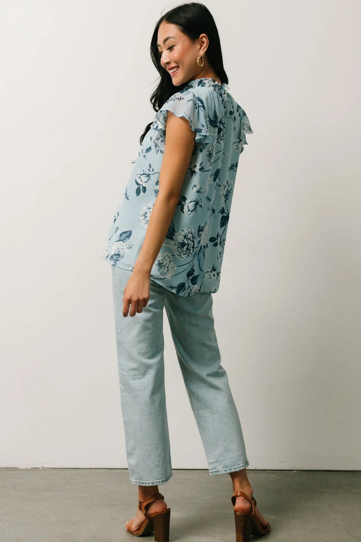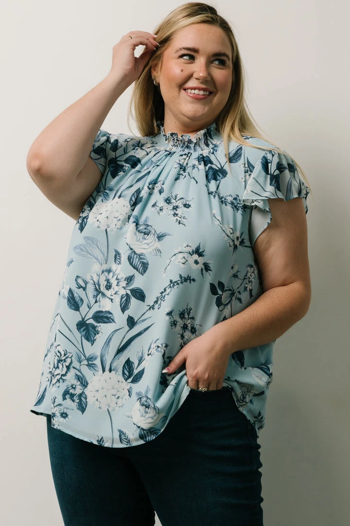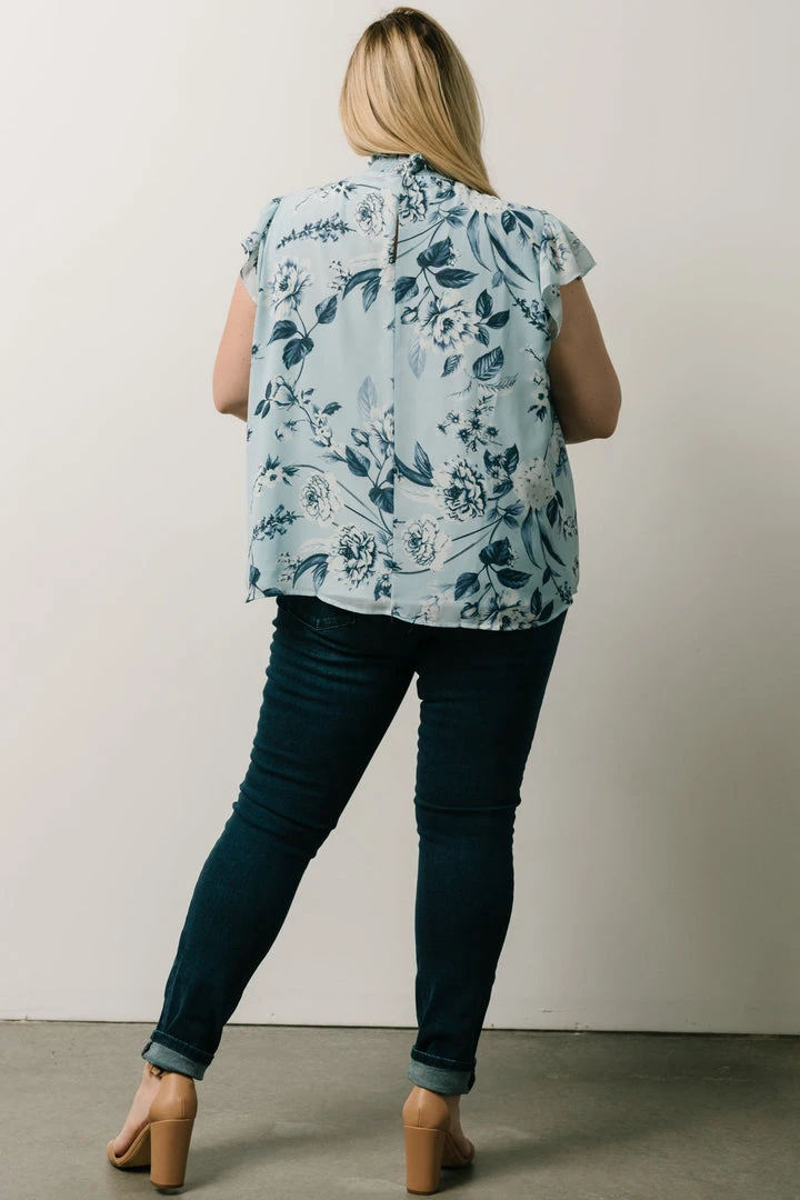 SL Chloe Mock Neck Top | Light Blue Floral Tops