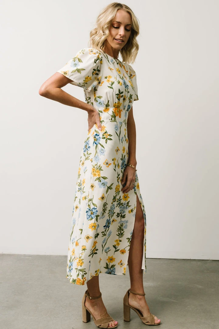 SL Eleanor Midi Dress | Yellow + Blue Floral