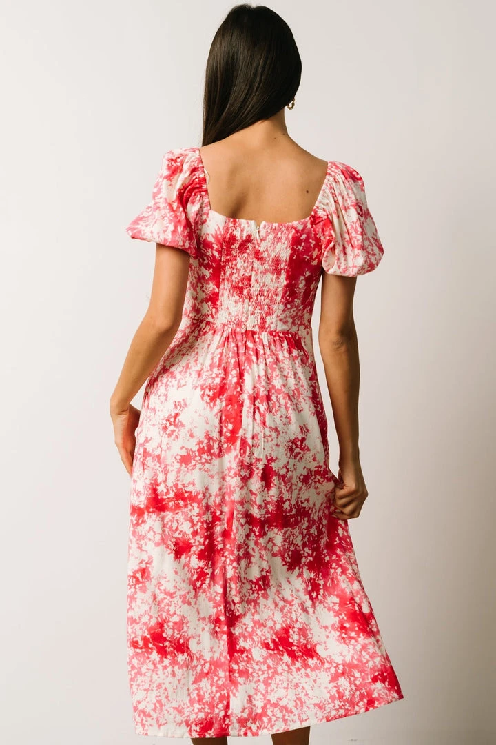 SL Kenna Midi Dress | Fuchsia Watercolor Print Dresses