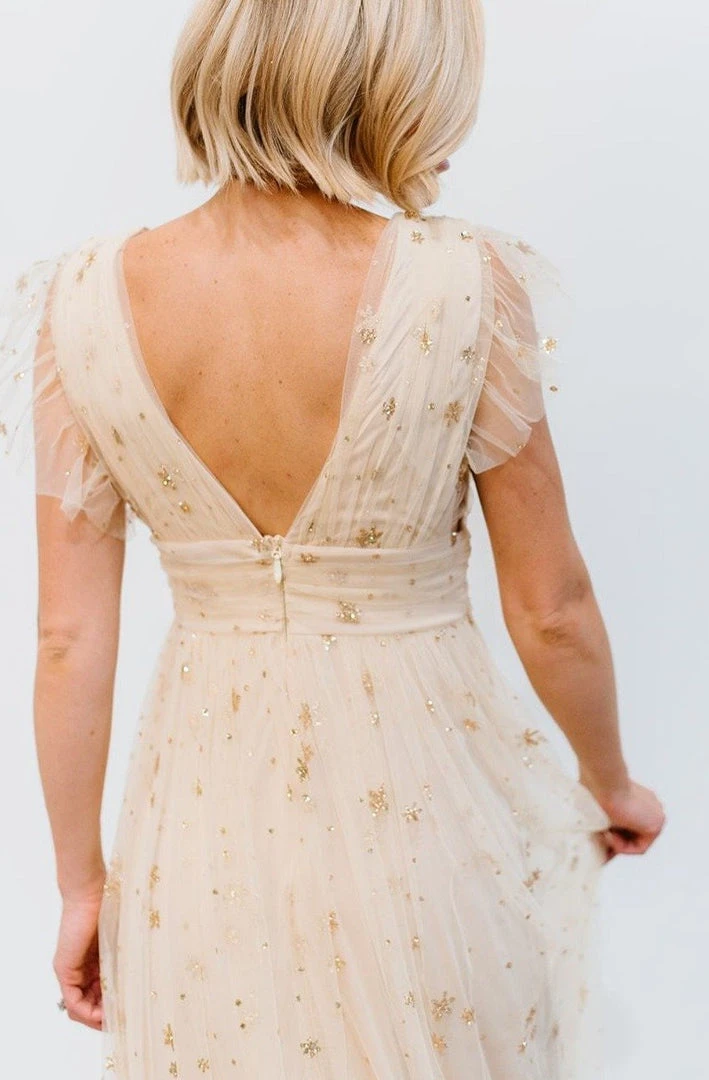 - We recommend maintaining the glitter by keeping the dress in a garment bag or separate from other clothing, as the glitter will shed