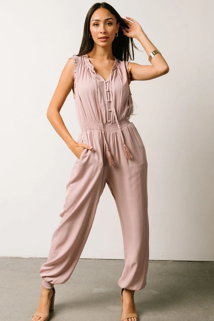 SKU: su-7726051426469 Categories: Jumpsuits, Shop by style, Vacation Tags: Color-pink, Jumpsuit, Mauve, Pockets, Ruffle, Style-ruffle, Style-smocked, Supplemental